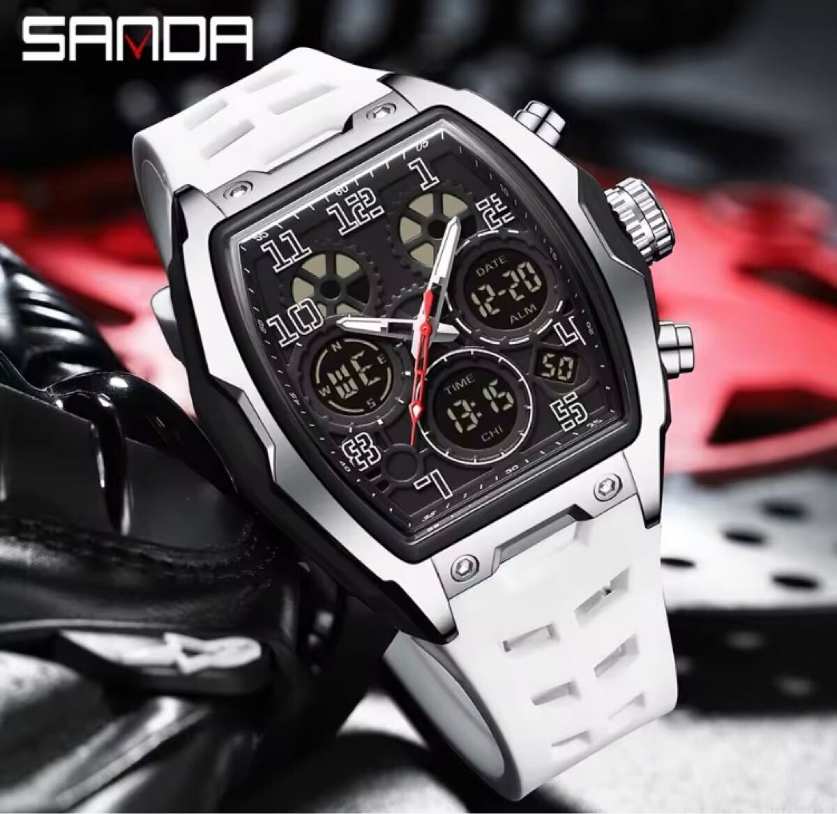 - 限定セール メンズ腕時計 デジタルクロノグラフ ストップウォッチ カレンダー ホワイト ダイバーズ ミリタリー1196 防水