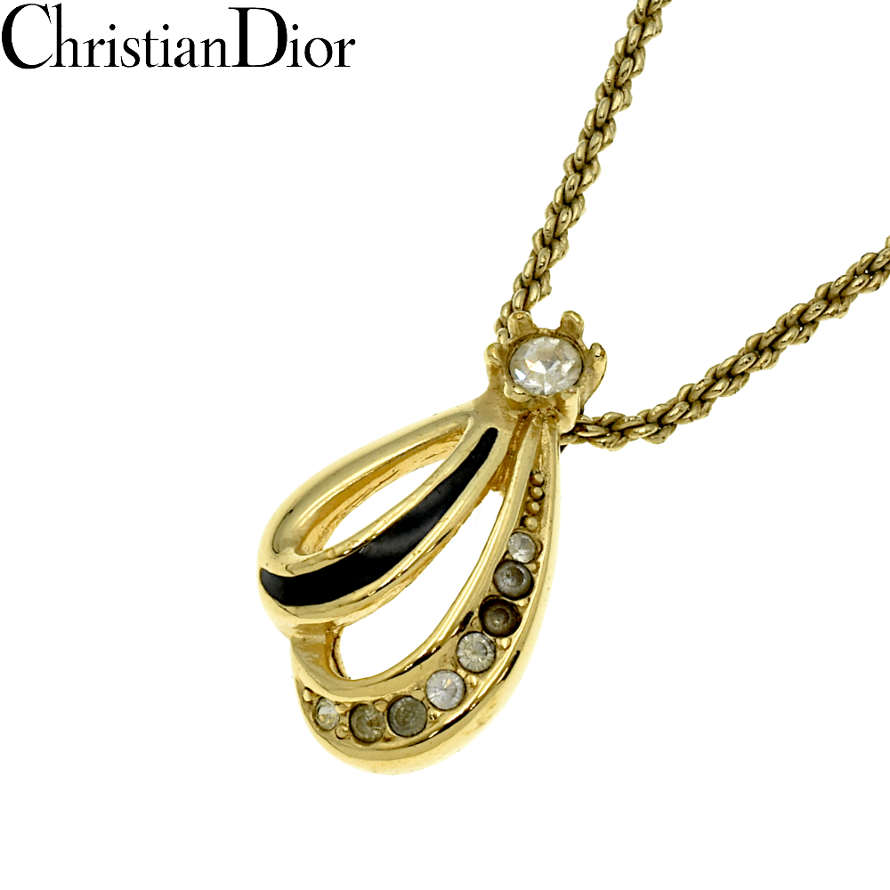 - 【A02085】Christian Dior クリスチャンディオール ラインストーン ネックレス ブラック×ゴールド