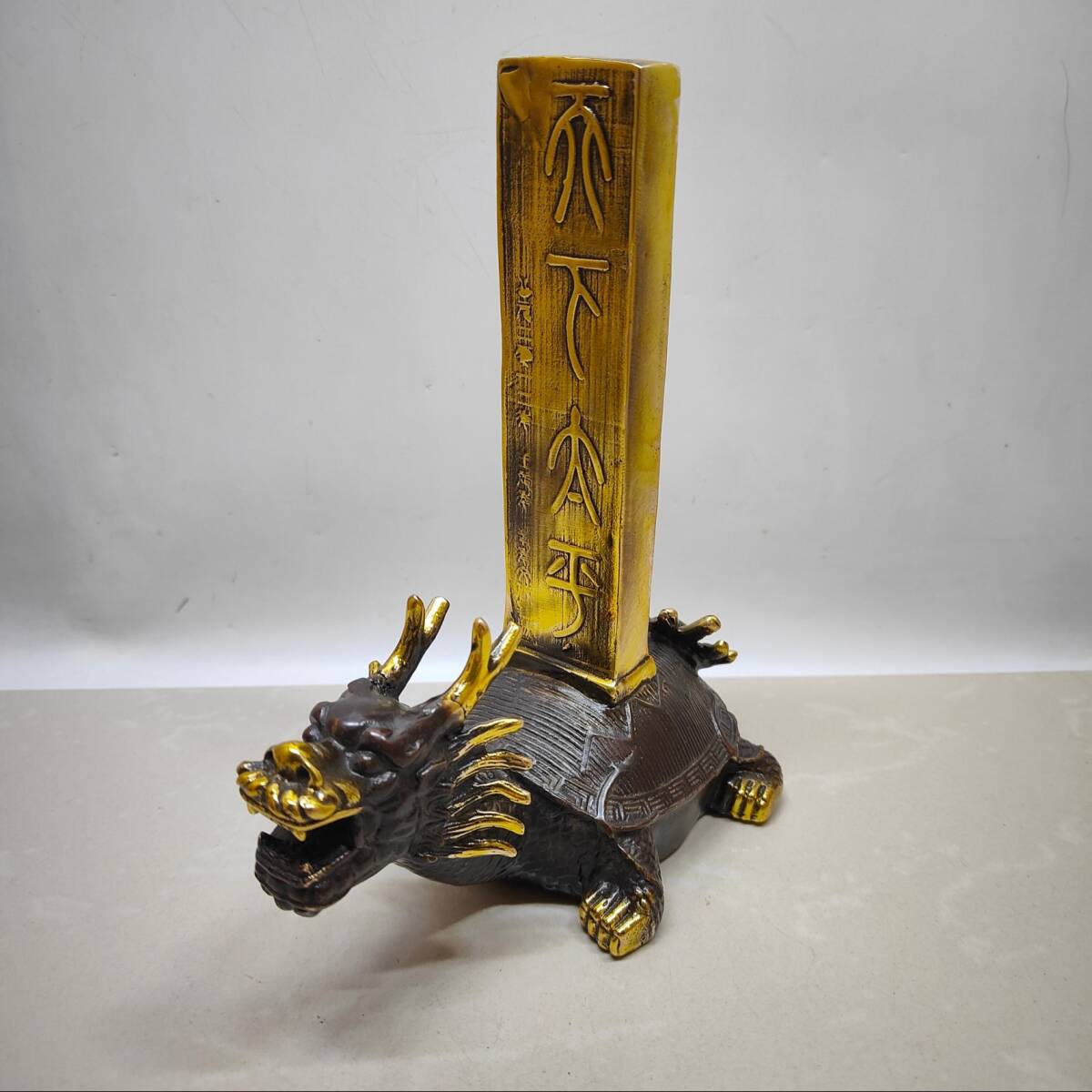 - ▽鴻▽ 黄銅製 塗金 太平龍龜石碑 置物 賞物 古賞物 中国古玩 中国古美術