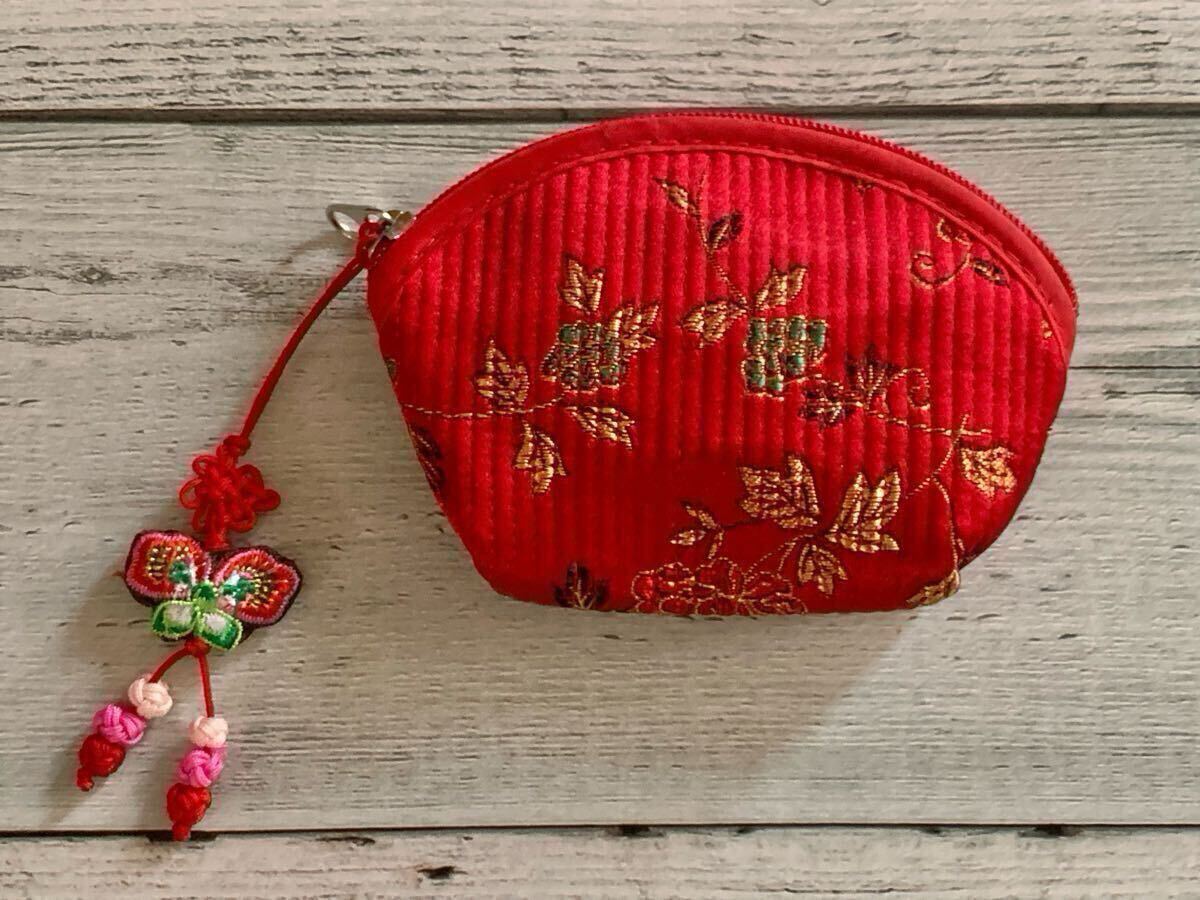 - 小銭入れ 赤 刺繍 コインケース 中国 台湾 韓国 雑貨 小物入れ ポーチ 伝統工芸品