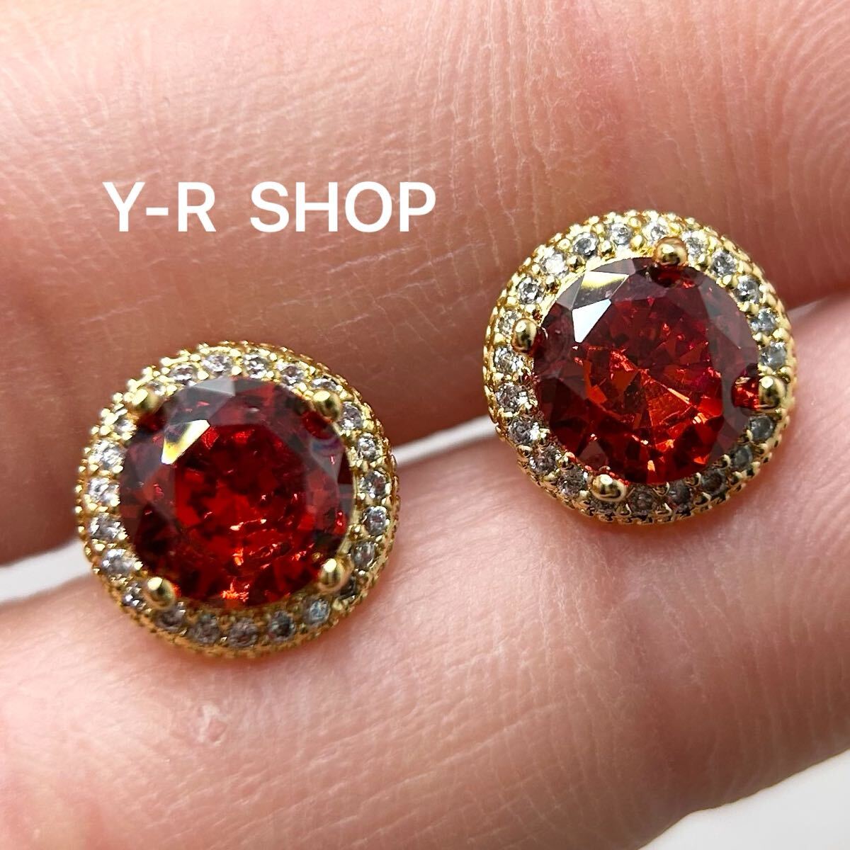 - ガーネットとホワイトトパーズのラウンド型ピアス★レディースゴールドアクセサリーカラーストーンキュービックジルコニア新品宝石Y-R SHOP