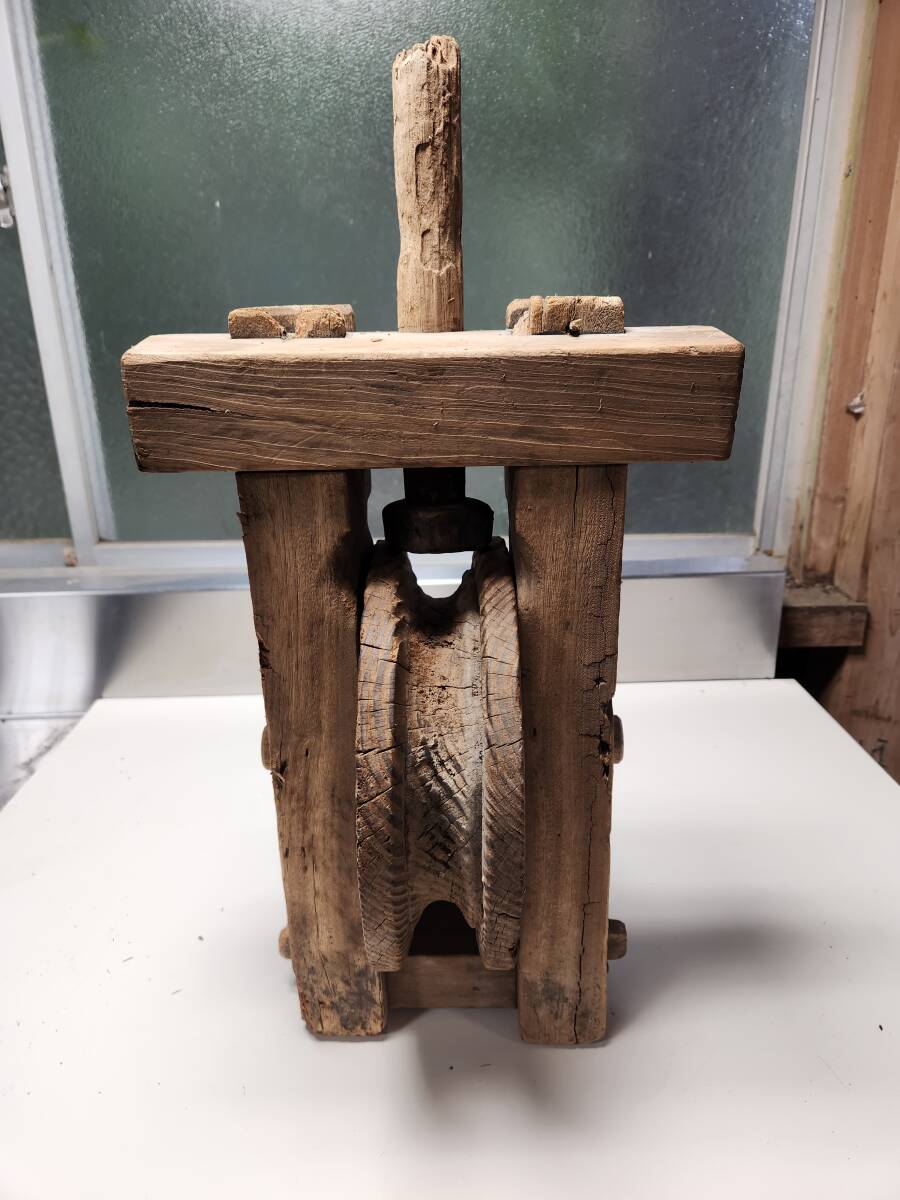- 木製滑車 井戸 つるべ アンティーク 年代物