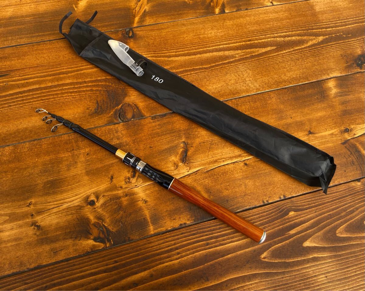 - テレスコロッド 6ft 180cm ウッド調 スピニングロッド バス釣り トラウト
