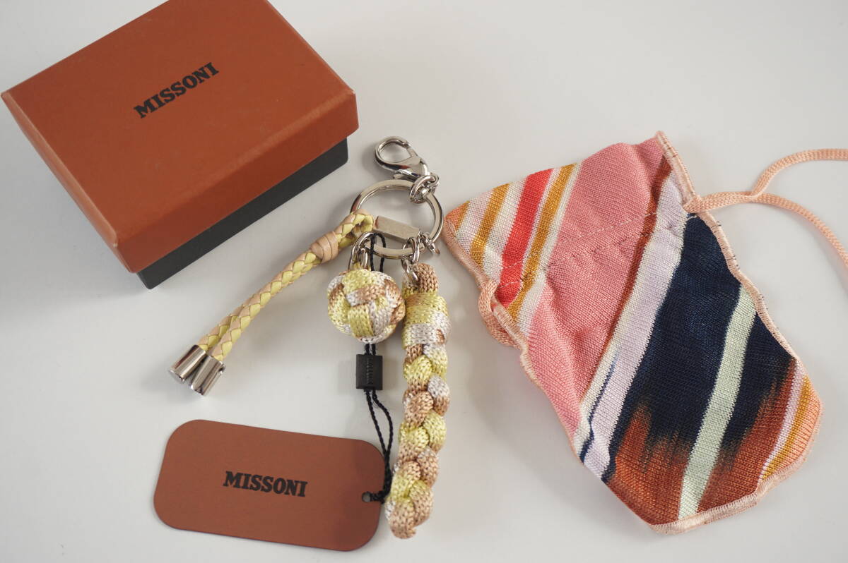 - ミッソーニ MISSONI*チャーム/キーホルダー レザー編み込み アクセサリー*ニット保存袋/箱付き 未使用