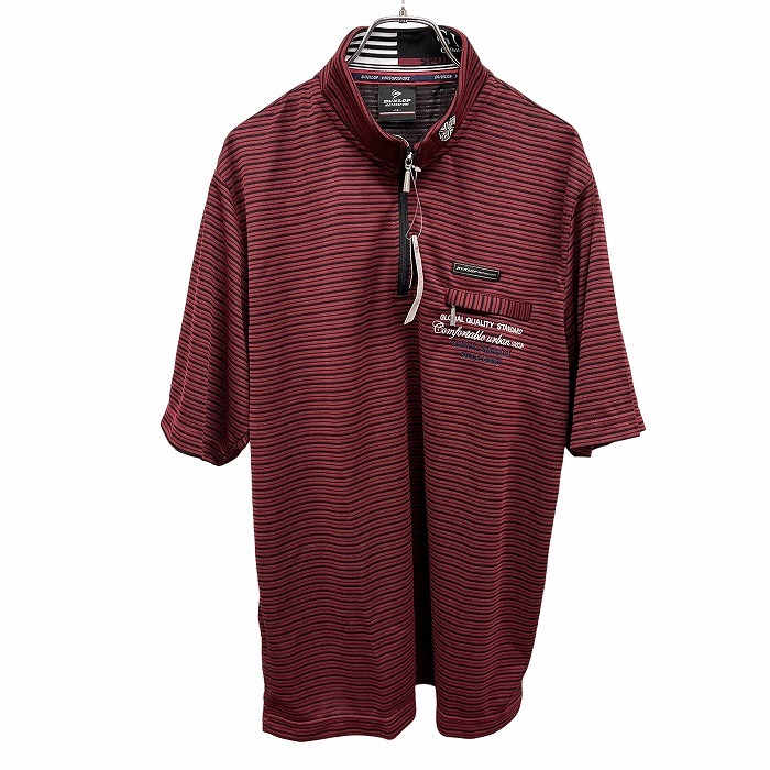 - 【新品】DUNLOP MOTOR SPORT ゴルフ ハイネックポロ ハーフジップシャツ ボーダー 半袖 ポリ100% LL XL レッド 赤×白×黒×紺 メンズ
