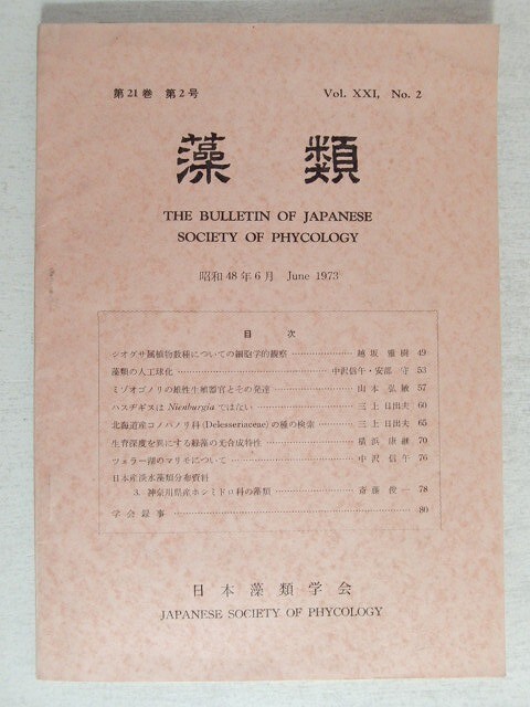 - 藻類1973年6月 第21巻第2号◆日本藻類学会/シオグサ属植物数種についての細胞学的観察/ミゾオゴノリ/ハスヂギヌ