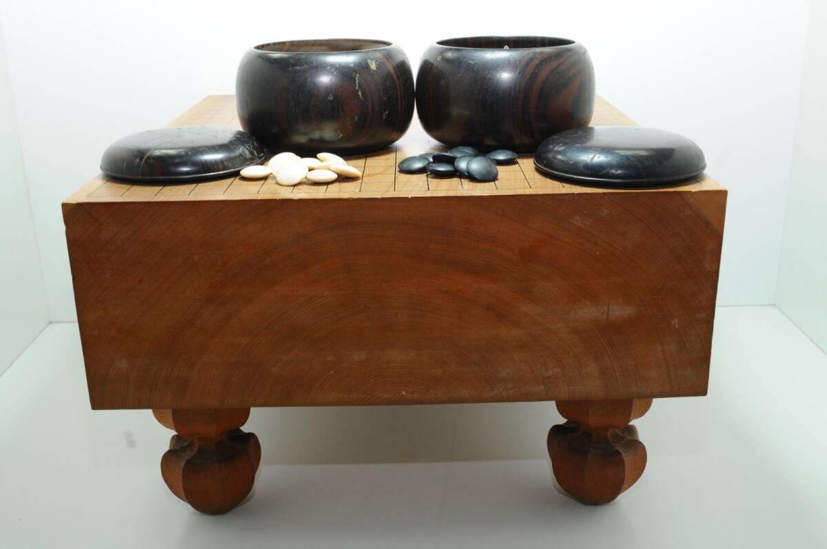 - 【高級 本榧木】囲碁 基盤 蛤碁石 那智黒 碁石セット 盤厚14.5cm 脚付 へそ有り