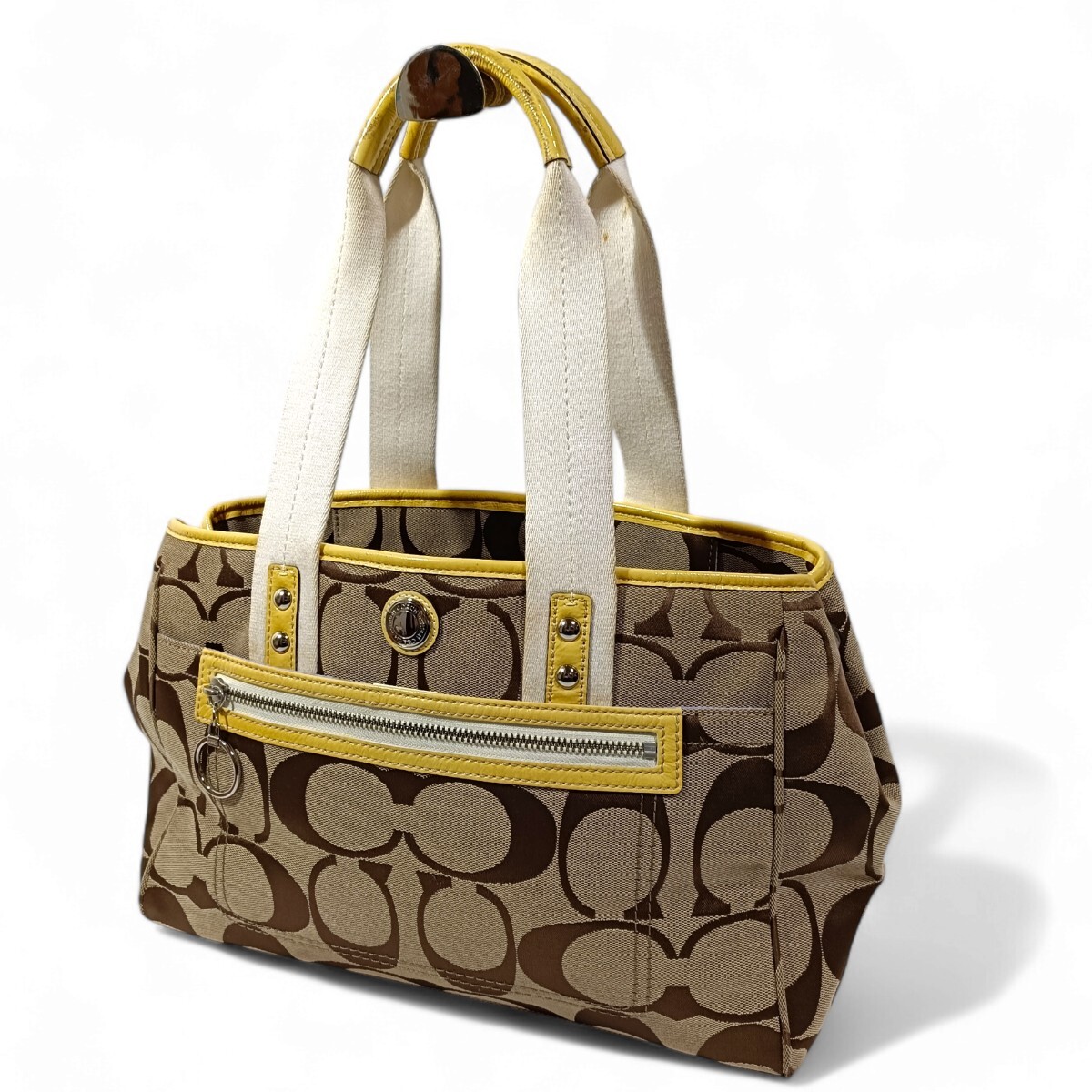 - 【美品】 正規品 コーチ COACH シグネチャー 黄色 ハンドバッグ キャンバス トートバッグ ベージュ 肩掛け かばん 鞄 大容量 男女兼用