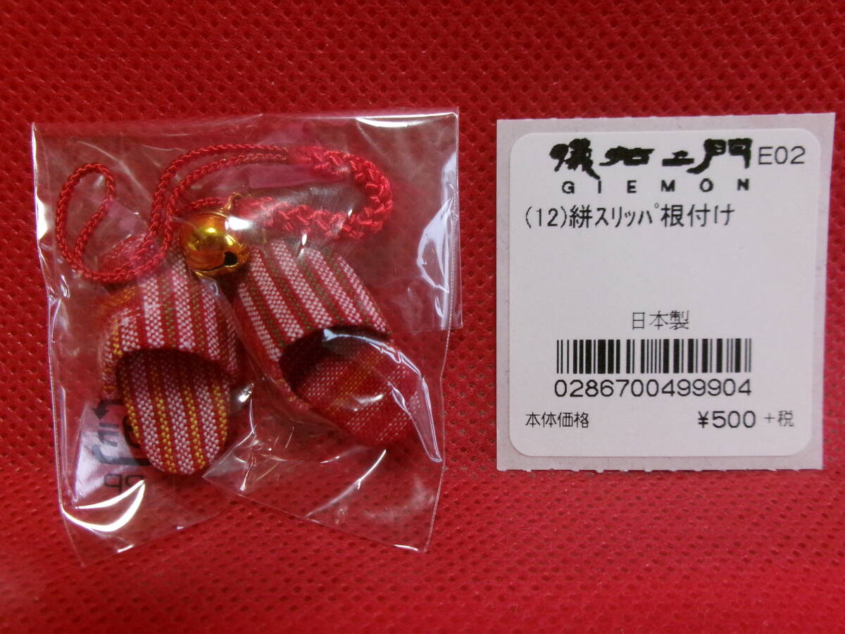- 未使用品 久留米絣 儀右衛門 ミニスリッパ 根付 ミニチュア 赤