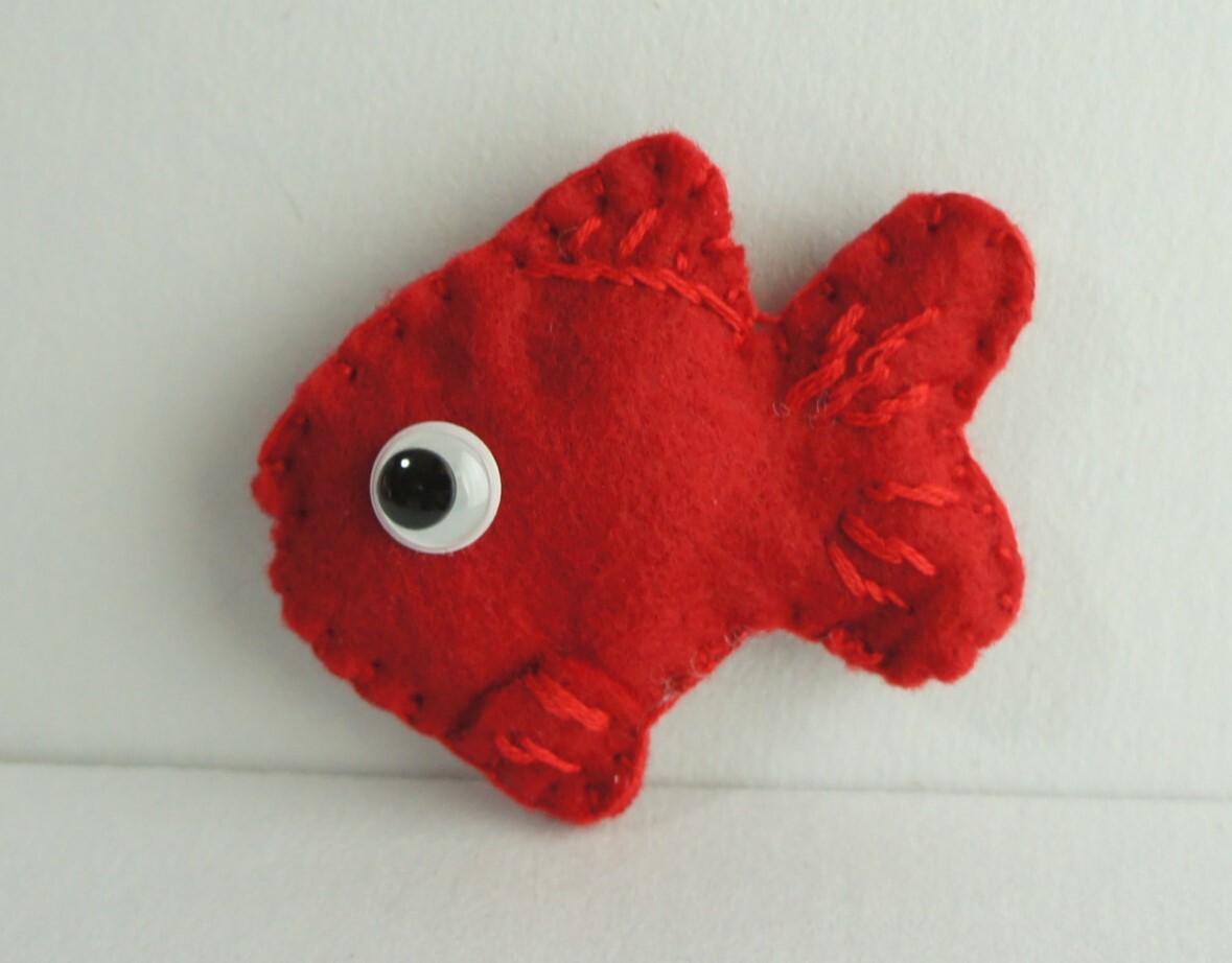 - ♪ ハンドメイド ブローチ 金魚 フェルト 刺繍ステッチ 動眼 綿入り