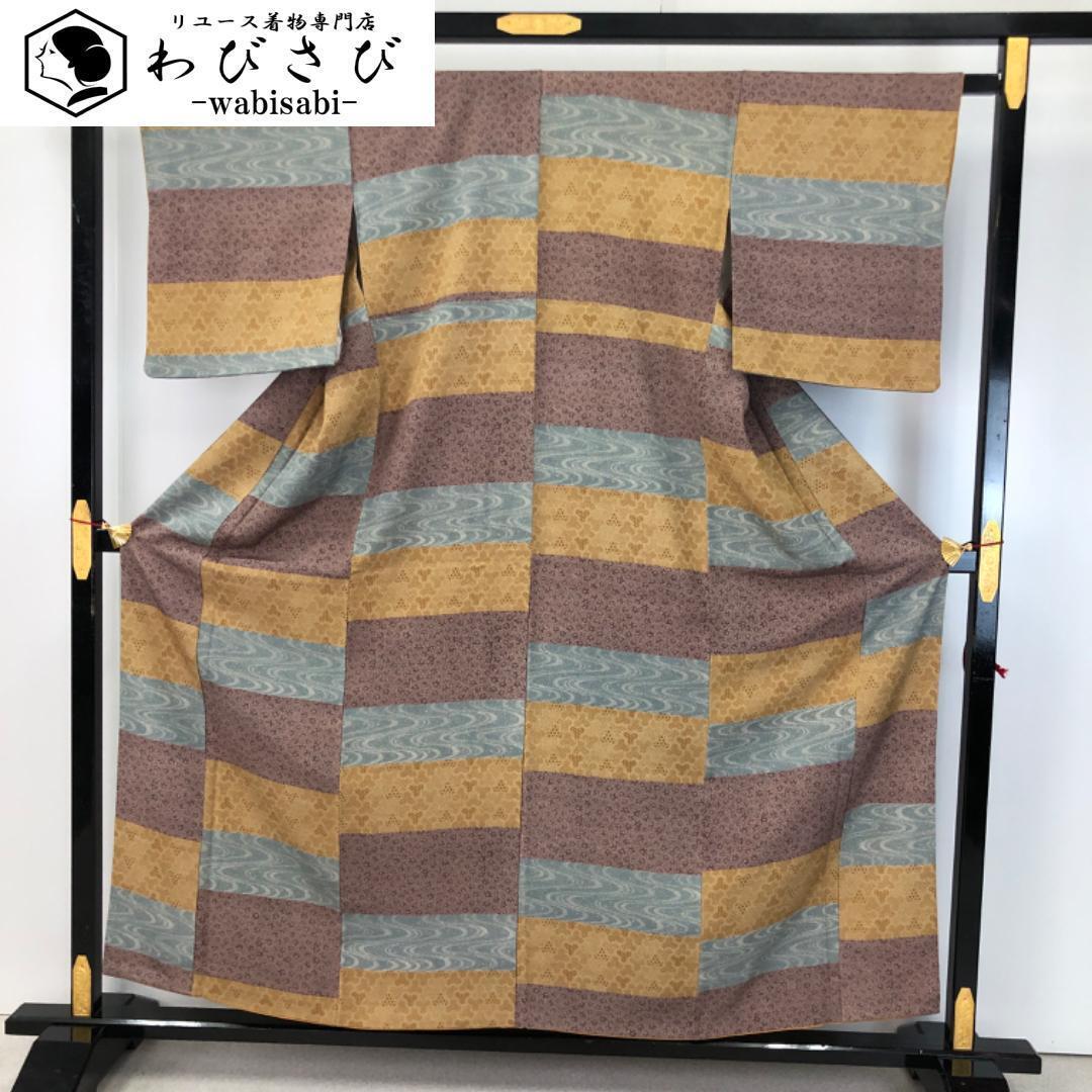 - 小紋 寄せ柄 毘沙門亀甲 紅葉 流水 縮緬 K-4636 着物 きもの kimono 和服 和装 中古 リサイクル着物 【送料無料】
