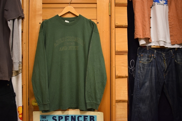 - グッドプリント90sビンテージAbercrombie&Fitchアバクロンビーアンドフィッチ長袖プリントTシャツMグリーン緑アメカジストリートx648