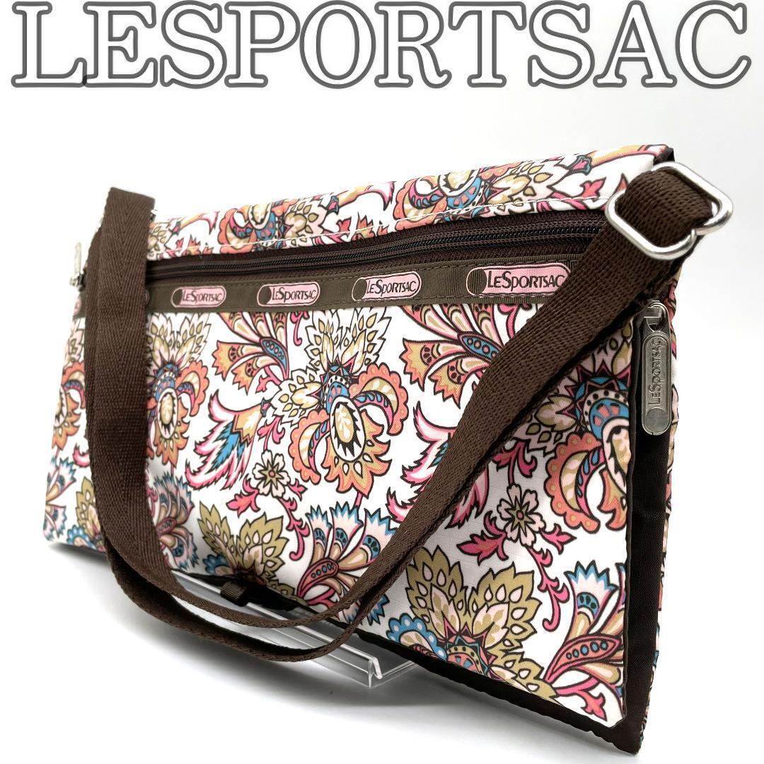 - 【良品】レスポートサック ショルダーウォレット ポーチ 肩掛け ブラウン 花柄