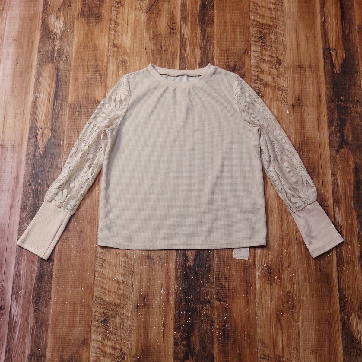 - 未使用 シーイン SHEIN レーススリーブワッフル長袖トップス レディース Mサイズ ライトベージュ PD6