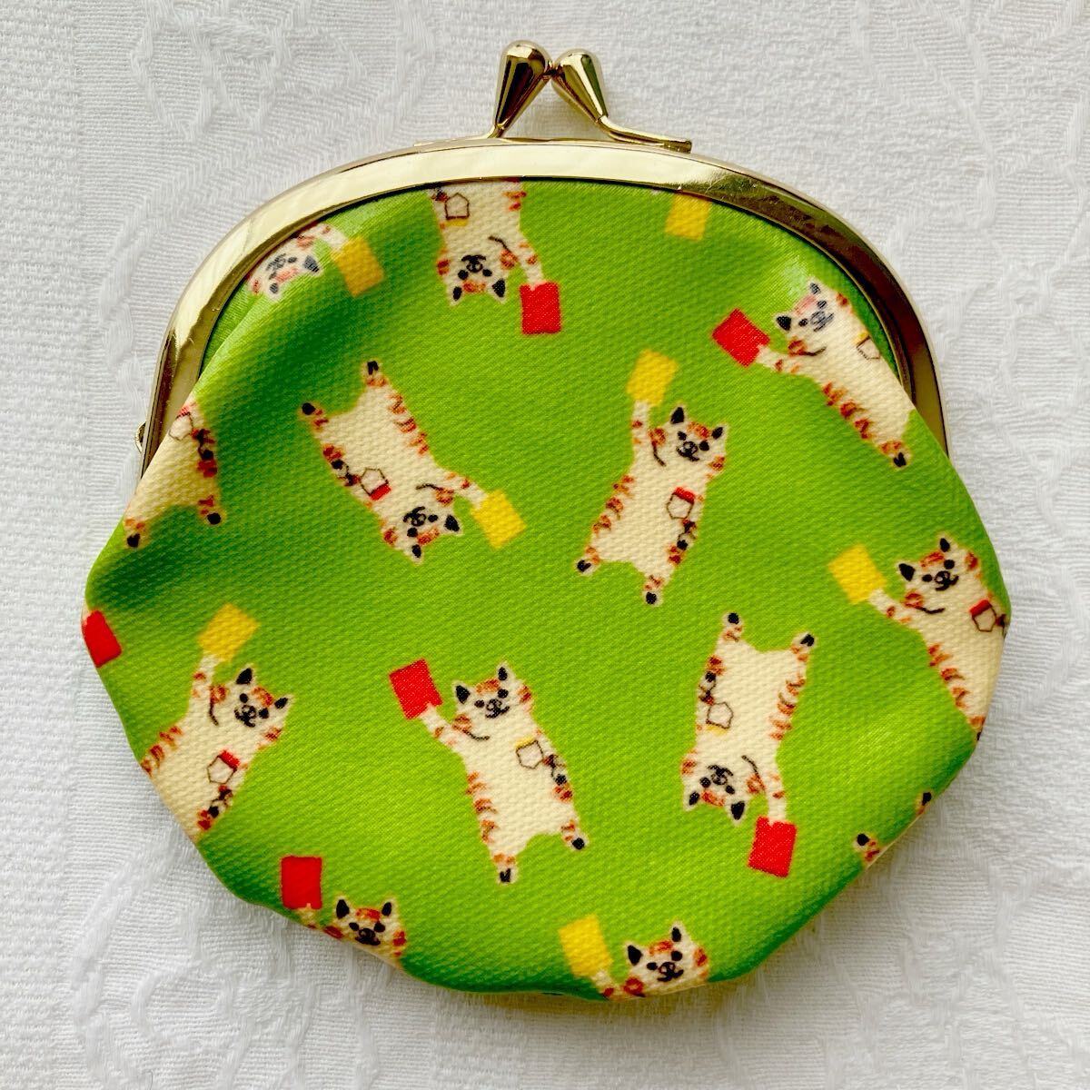 - l54)猫 がま口 財布 コインケース 小銭入れ イエローカード レッドカード レフェリー 警告 カード レフリー 審判 ねこ グリーン