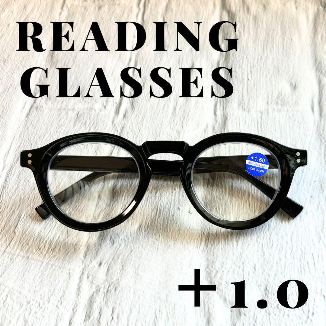 - +1.0 老眼鏡 ブルーライトカット 黒縁 太縁 ボストン レトロ ブラック 黒 眼鏡 シニアグラス レディースメンズ UVパソコンPC 軽量おしゃれ