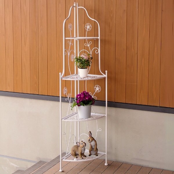 - フラワーシェルフ アイアン おしゃれ 花台 アイアンの折りたたみフラワーシェルフ コーナー WH 送料無料(一部地域除く) ebn1971