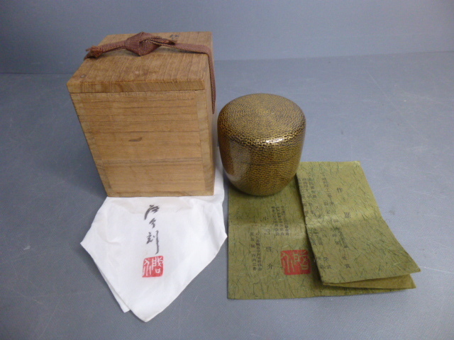 - 【史】棗 小西啓介 輪島塗 極細沈金 茶道具 共箱共布栞