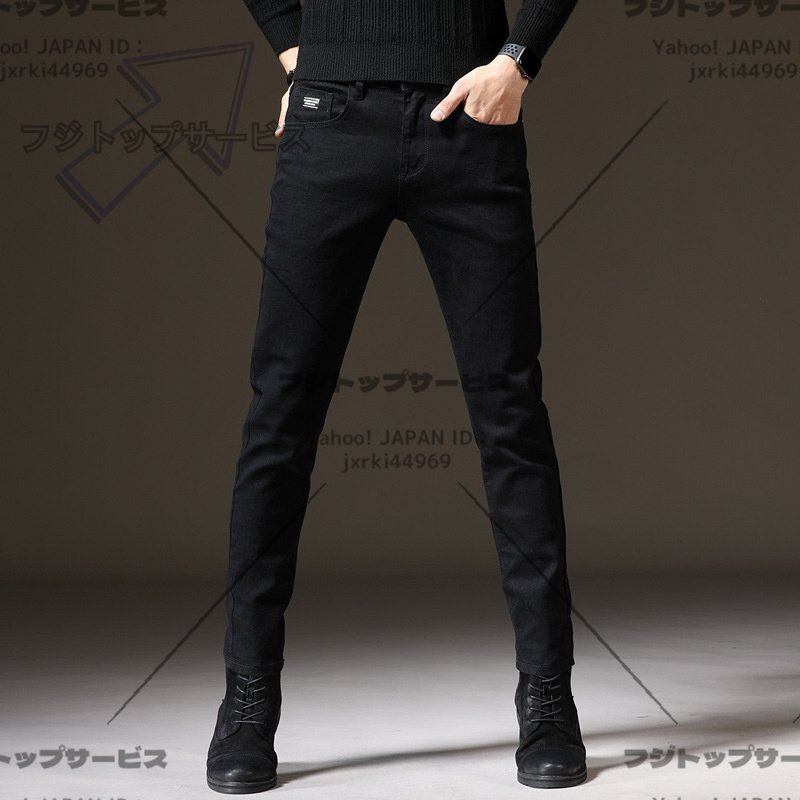 > 人気品W32 ブラック スキニー デニム メンズ ストレッチ カジュアル ジーンズ スリムパンツ 美シルエット 黒 ブラック 春 秋冬