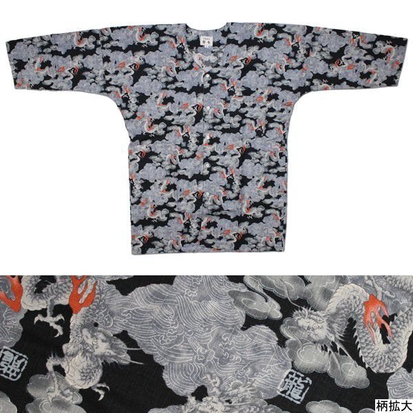 - お祭用品/肉襦袢 鯉口シャツ 龍 192黒 大(大人用)