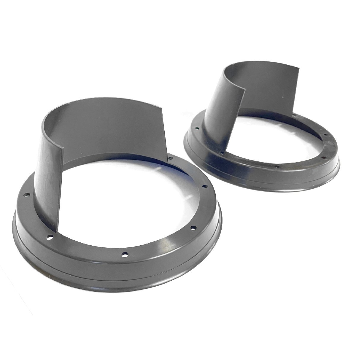 【サイズ】 ◆個数 : 2個セット ◆材質 : ゴムラバー仕様 (ゴムですのでカット可能です) ◆サイズ : 190φ×97mm(雨除け部分70mm) ◆厚み : スピーカーから上に25mm ◆ホールサイズ : 140mm ◆穴対角 : 156mm