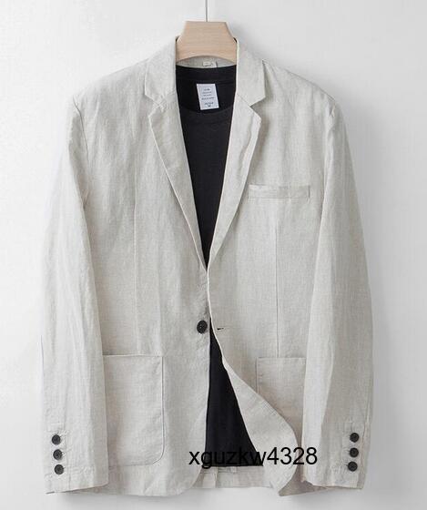 - リネンジャケット メンズ ワンボタン テーラードジャケット 麻 ブレザー スリム 清涼長袖 無地 通勤 カジュアル M~3XL グレー 多色/XS282