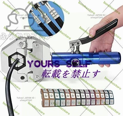 - ホース圧着ペンチ 油圧クランプ ACホース圧着工具 一体式 8T 七種ダイス 収納ケース付き 自動車修理