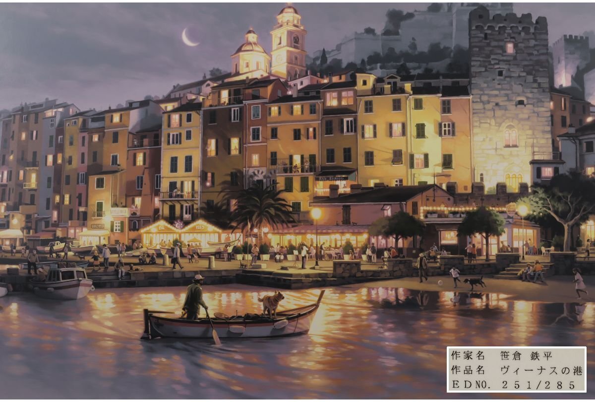 > [ギャラ藤]シルクスクリーン/笹倉鉄平/『ヴィーナスの港』251/285 /直筆サイン/A-1362 (検索)骨董/絵画/版画/リトグラフ