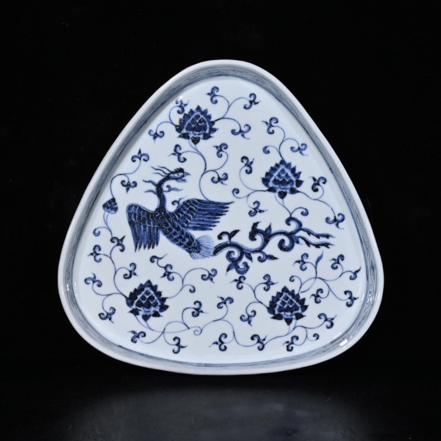 - 明時代 宣德年製款 古陶磁器 青花纏枝蓮鳳紋盤 盤 盤子 極細工 古賞物 古美味 東洋彫刻 中国唐物 時代物 骨董 中国古美術
