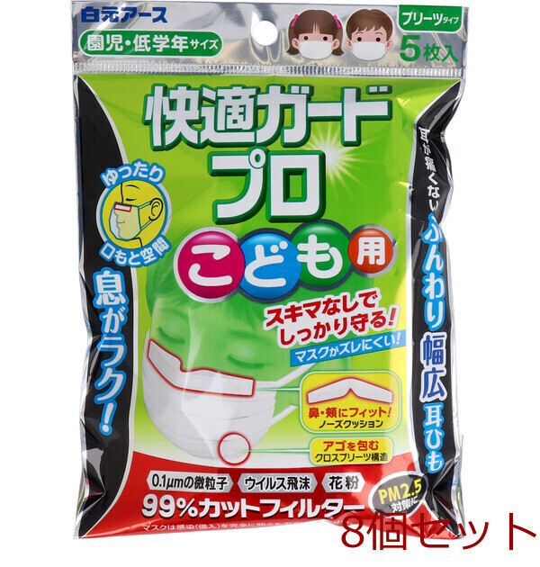 - 快適ガードプロ プリーツタイプ こども用 園児 低学年サイズ 5枚入 8セット