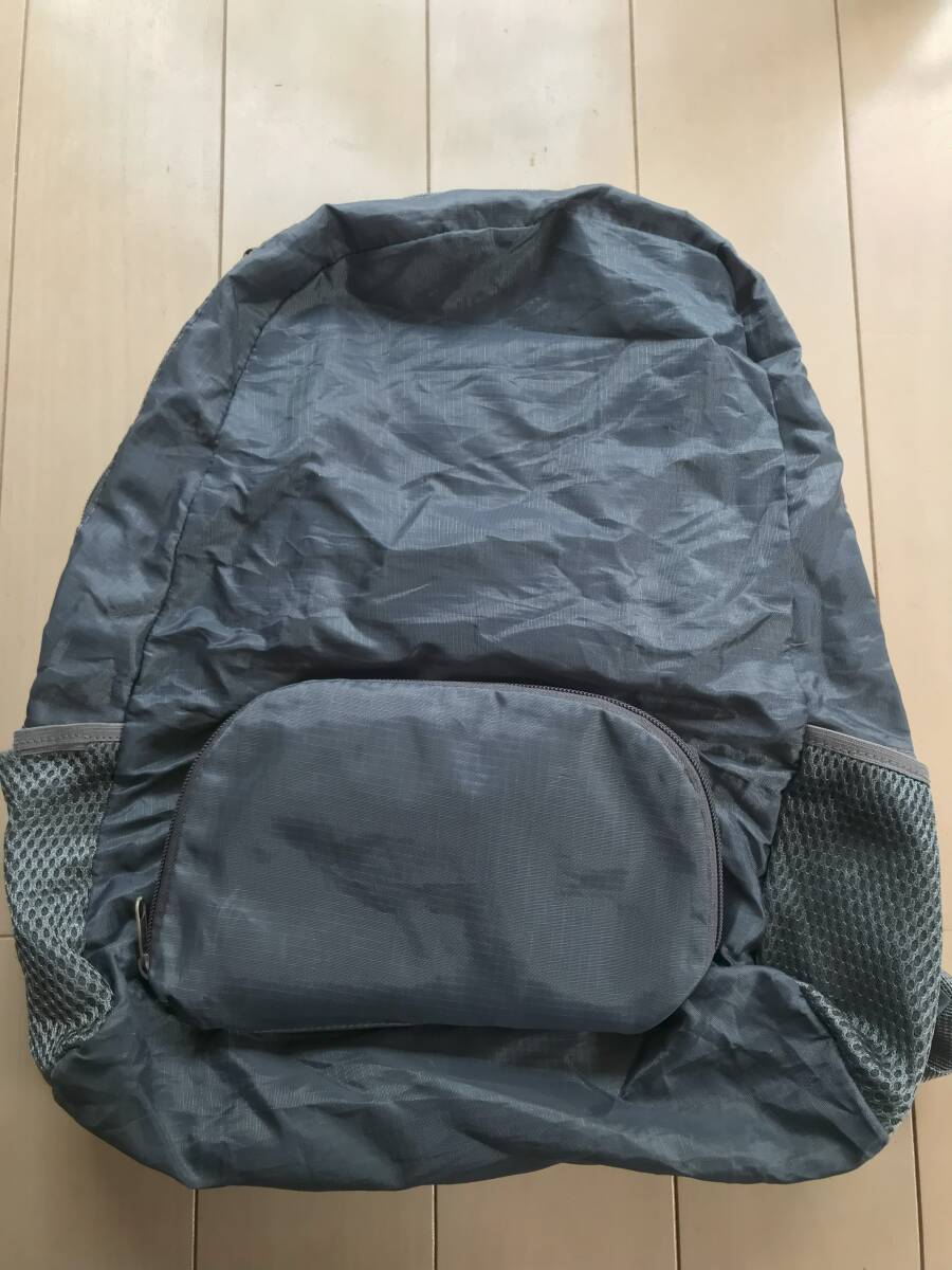 - 携帯用★超軽量小型収納リュック■ブルーグレー■重さ140g