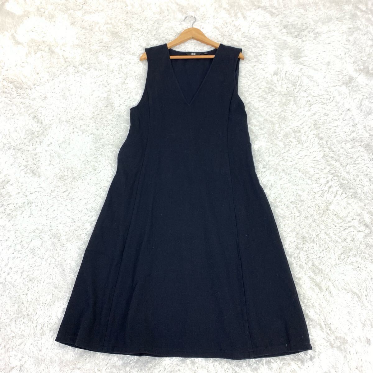 > UNIQLO ユニクロ ノースリーブワンピース ロングワンピース Vネック 紺 ネイビー ポリエステル コットン S YA9247