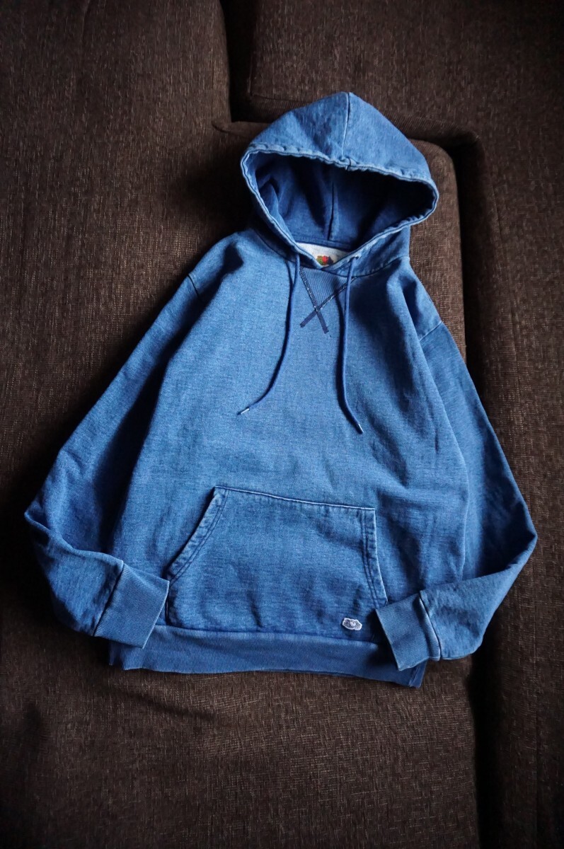 > ★FRUIT OF THE LOOM×BULUBLUE◎藍染めインディゴ染めのスウェット パーカー★ブルーブルー フルーツオブザルーム ハリラン 聖林公司