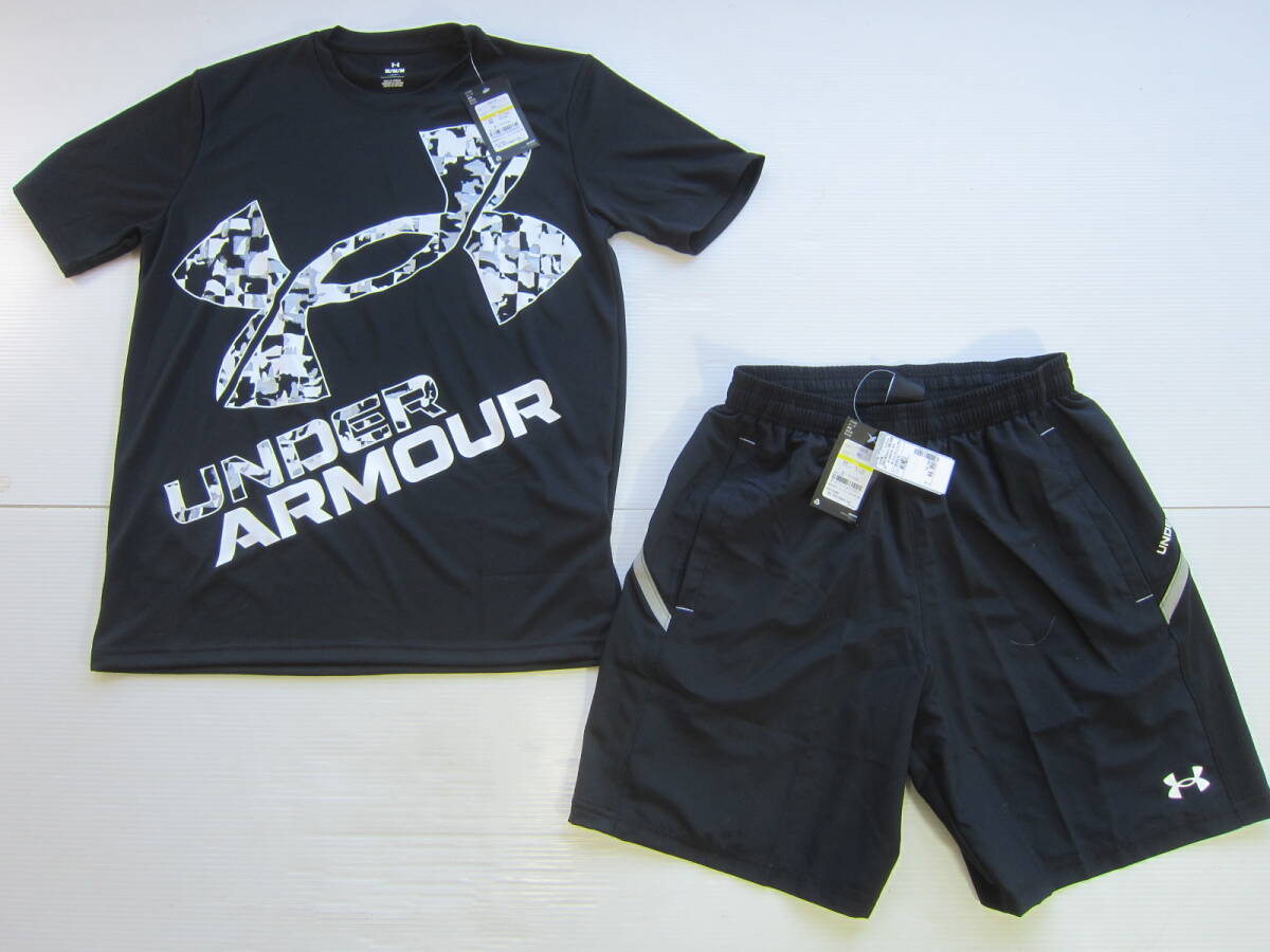 - 新品◆アンダーアーマー UNDER ARMOUR 半袖 シャツ & ショートパンツ M 上下セット 黒ブラック ジョギング トレーニング 筋トレ / 長袖 L