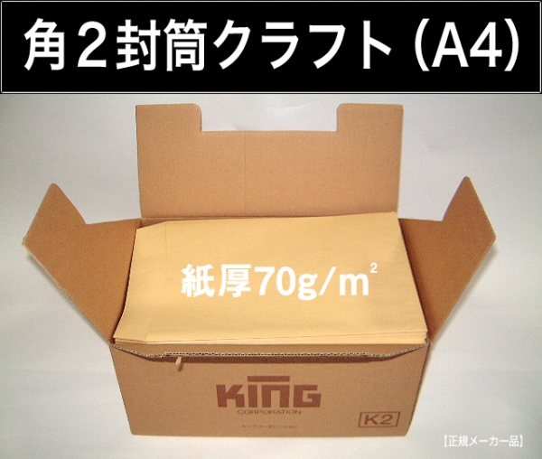 - 角2封筒《紙厚70g/m2 A4 クラフト 茶封筒 角形2号》500枚 クリックポスト発送に A4サイズ対応 角型2号 キングコーポレーション