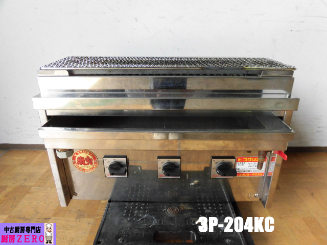 > 中古厨房 業務用 ステンレス 焼鳥専用タイプ 卓上 ヒゴグリラー 電気式 焼物器 電気 グリラー 3P-204KC 三相 200V 3面独立電熱式 3段切換