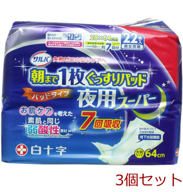 - サルバ 朝まで1枚ぐっすりパッド 夜用スーパー 男女兼用 22枚入 3セット