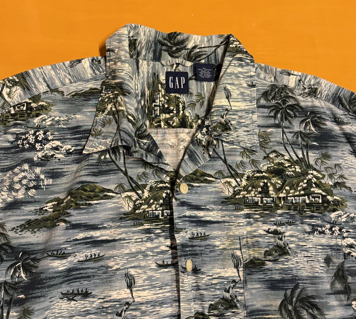 - 90s ギャップ GAP オールドギャップ 総柄 ヤシの木柄 オープンカラー ハワイアンアロハシャツ メンズXL ヴィンテージ 古着