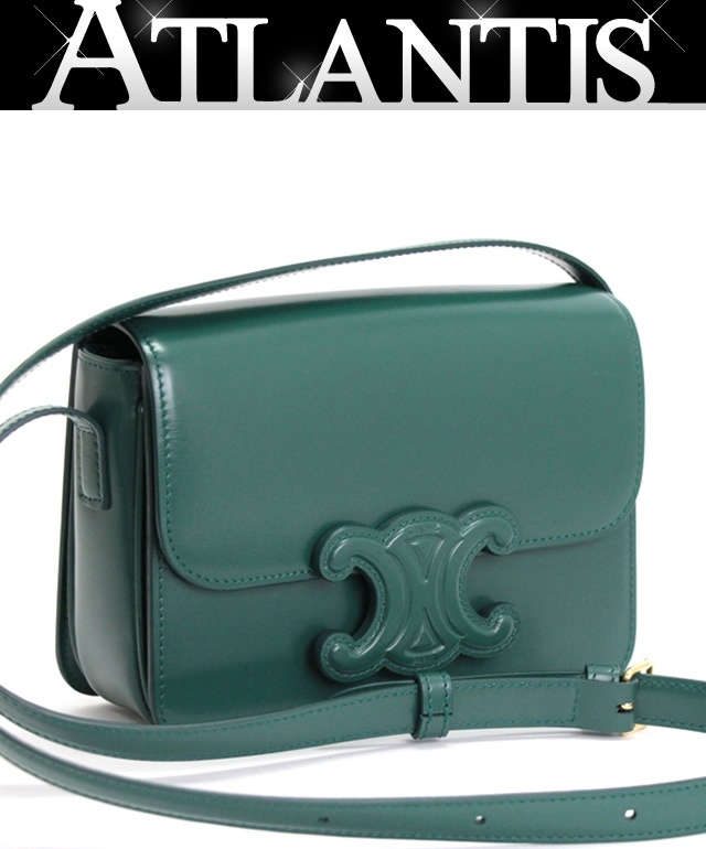 - セリーヌ CELINE キュイルトリオンフ ティーン ショルダーバッグ レザー グリーン 【70511】