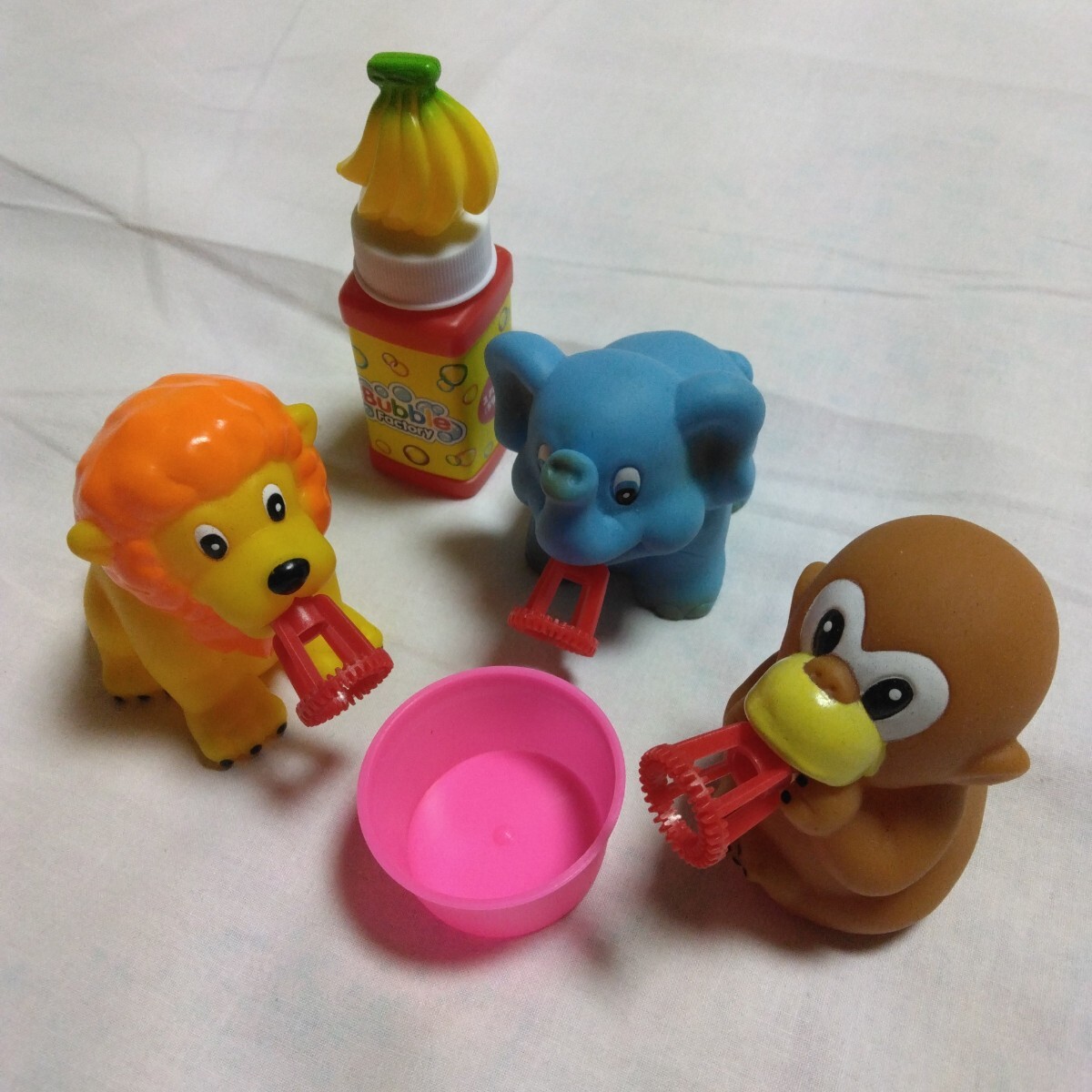 - アニマルソフビ人形 3点 シャボン液体付き 当時品 保管品 未使用品