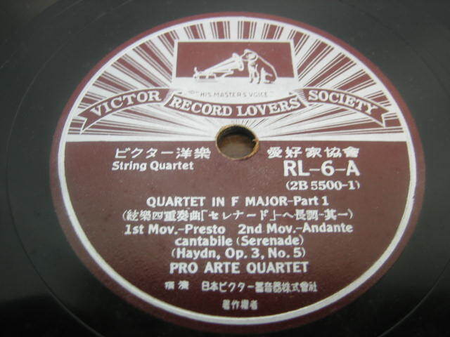 - ◆PRO ARTE OUARTET/プロ・アルト弦楽四重奏団◆弦楽四重奏曲「セレナード」ヘ長調 RL-6-A/B SP盤◆菅RA3