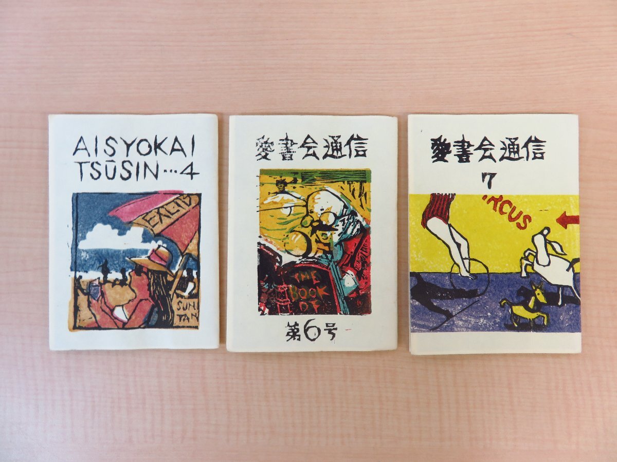 > 渡辺勲彩色木版画装『愛書会通信』(3冊セット)限定40部 1989-90年 下野愛書会刊 木版画蔵書票他貼込