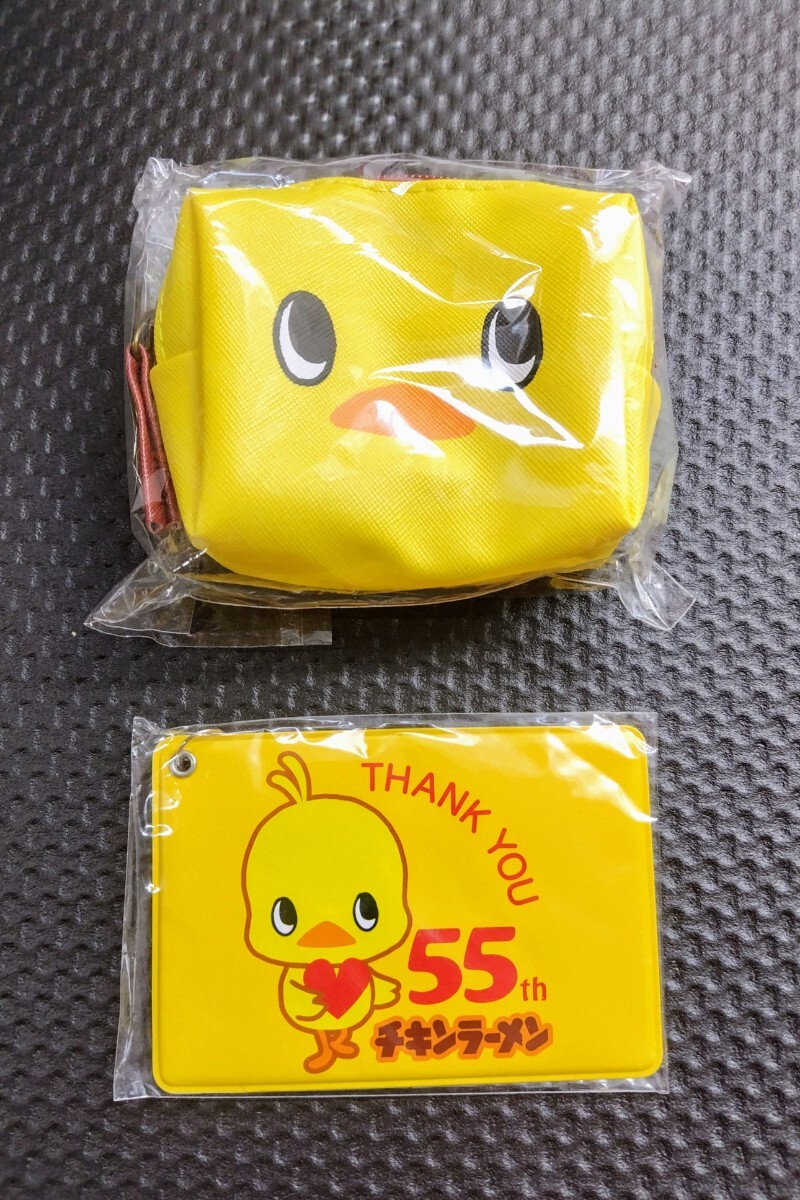 - ● チキンラーメン オリジナルポーチ、ひよこちゃんオリジナルパスケース
