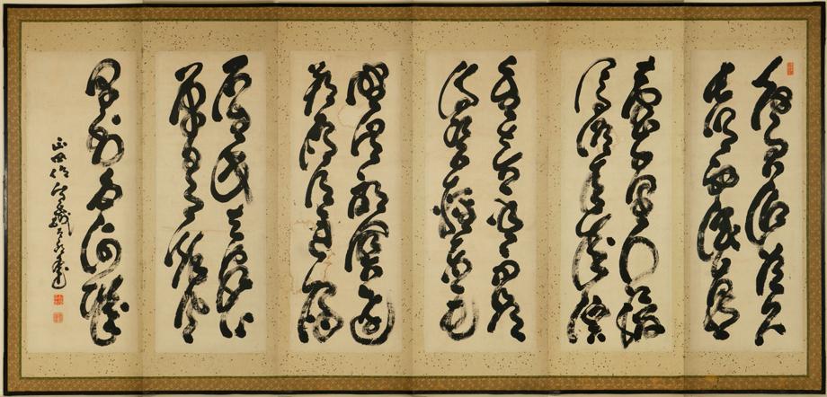 > 【真作】「山岡鉄舟 書屏風 六曲一双」幕末明治 剣術家 政治家 江戸生 千葉周作・山岡静山門下 無刀流 高橋泥舟義弟 幕末三舟 書