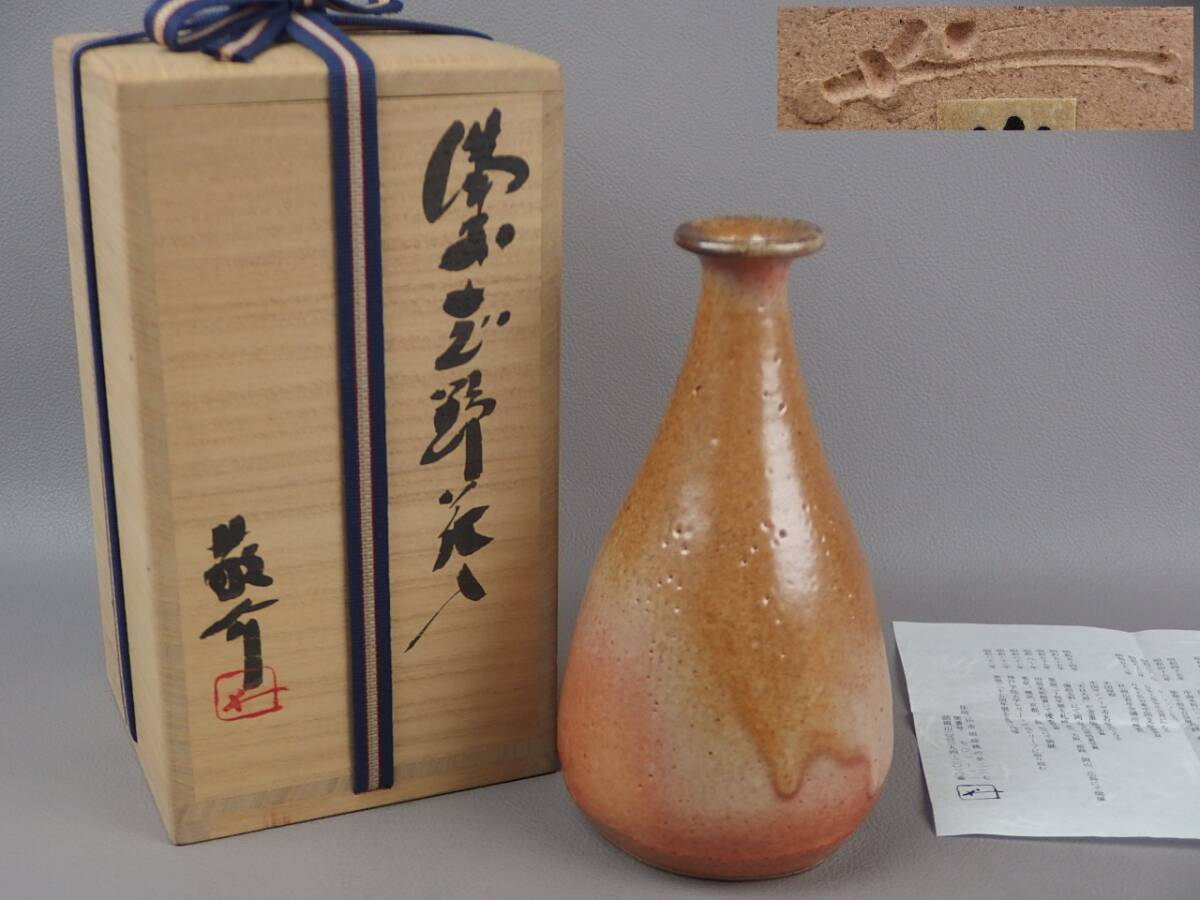> 【骨董・茶道具】★藤原敬介(恭助)★★備前志野花入 gk032tb31.7 花瓶 花生 花道 華道
