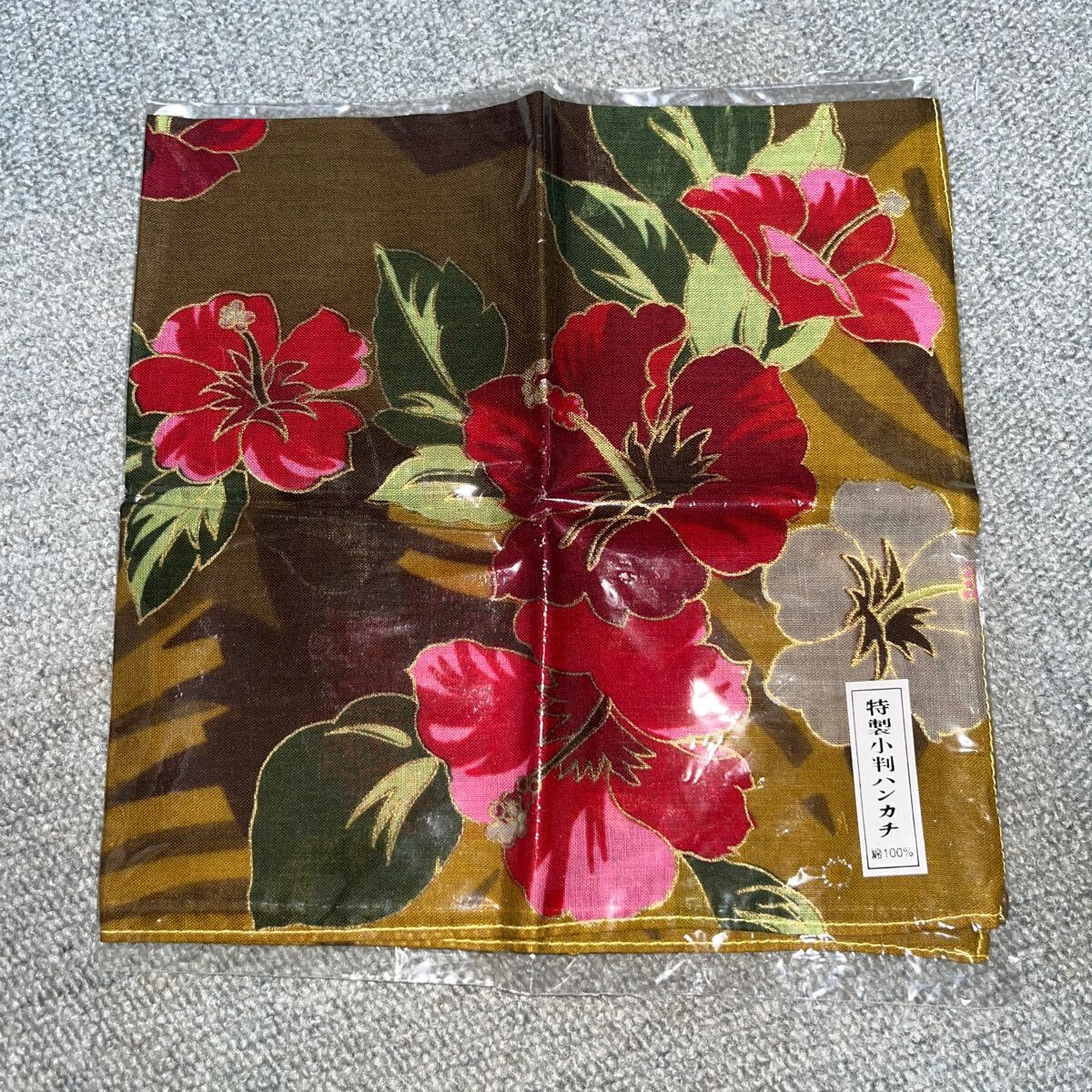 - 特製小判ハンカチ 和柄 沖縄? 綿100% 新品未使用 当時物 未開封