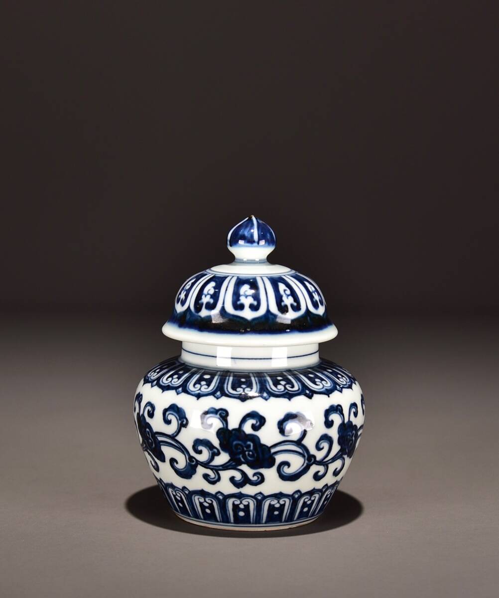 - 【超珍館蔵】明 宣德年製款 古陶瓷品 青花 靈芝紋 蓋罐 置物 古賞物 古美術品 稀少珍蔵品
