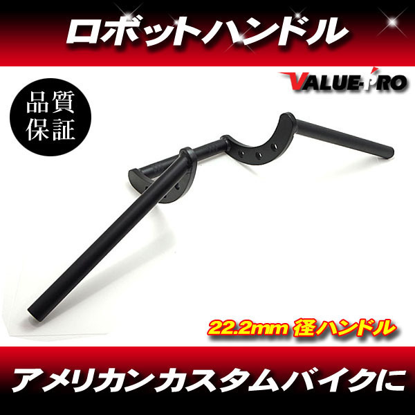 > 22パイ ロボハン アタックバー 高200mm マットブラック 黒 /新品汎用ハンドルバー アメリカン ボバー チョッパー フリスコ スタイル