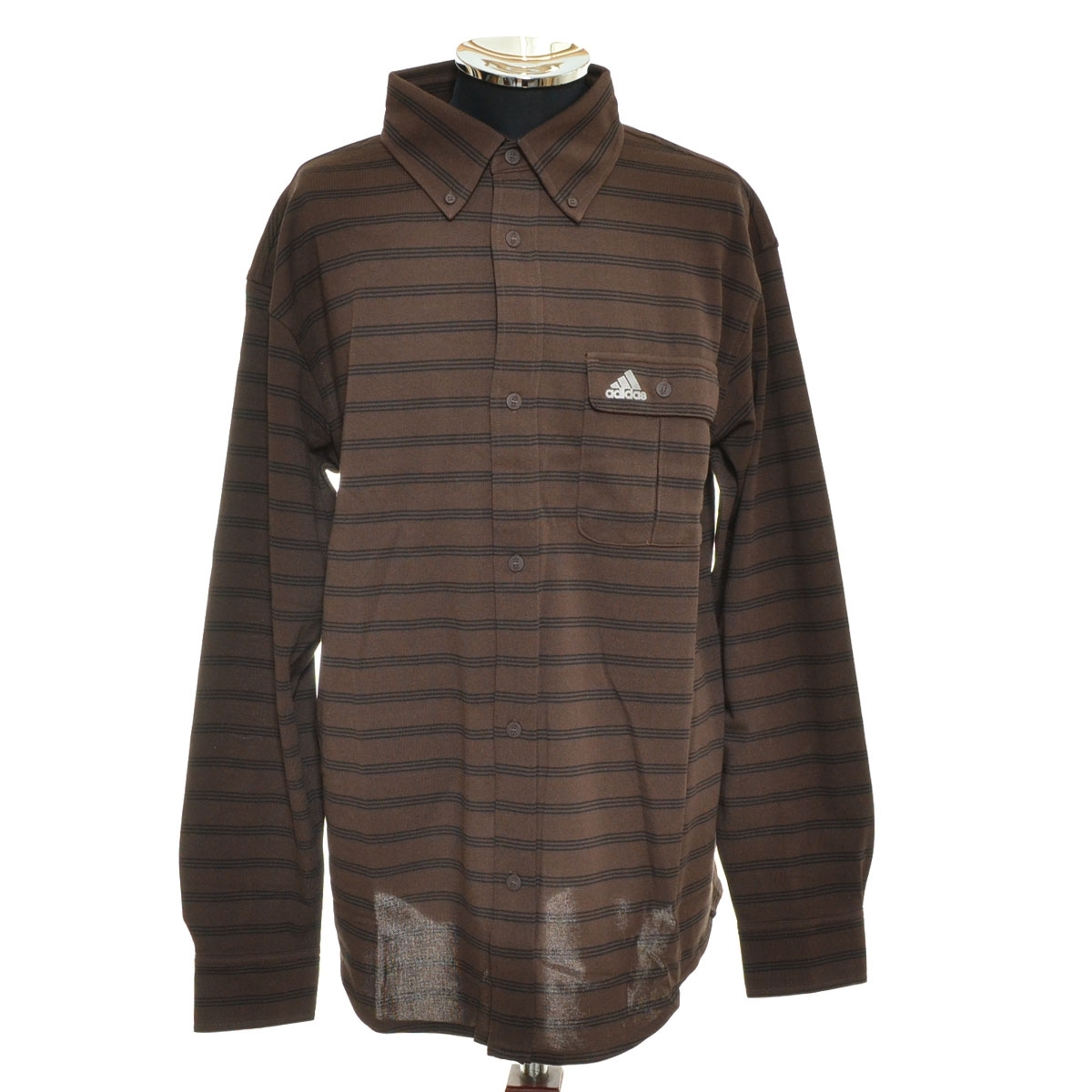 - 〇546444 未使用品 adidas アディダス ◯長袖シャツ 鹿の子 ピケ 524237 サイズO メンズ ブラウン ボーダー