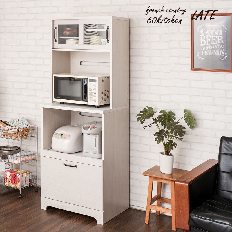 - 家電収納 キッチンボード 幅60cm 高さ160 ホワイト木目色 カップボード 食器棚 レンジ台 レンジボード 引き出し 収納家具 引き戸 引戸